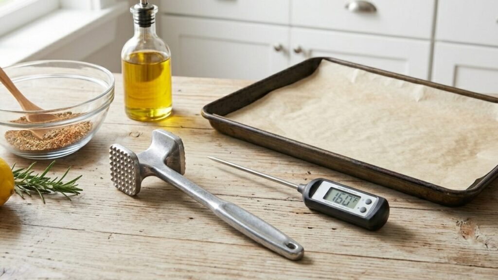 • Meat Mallet (or Heavy Skillet): Crucial for pounding the chicken to an even thickness. This ensures the thin part doesn’t dry out while the thick part finishes.